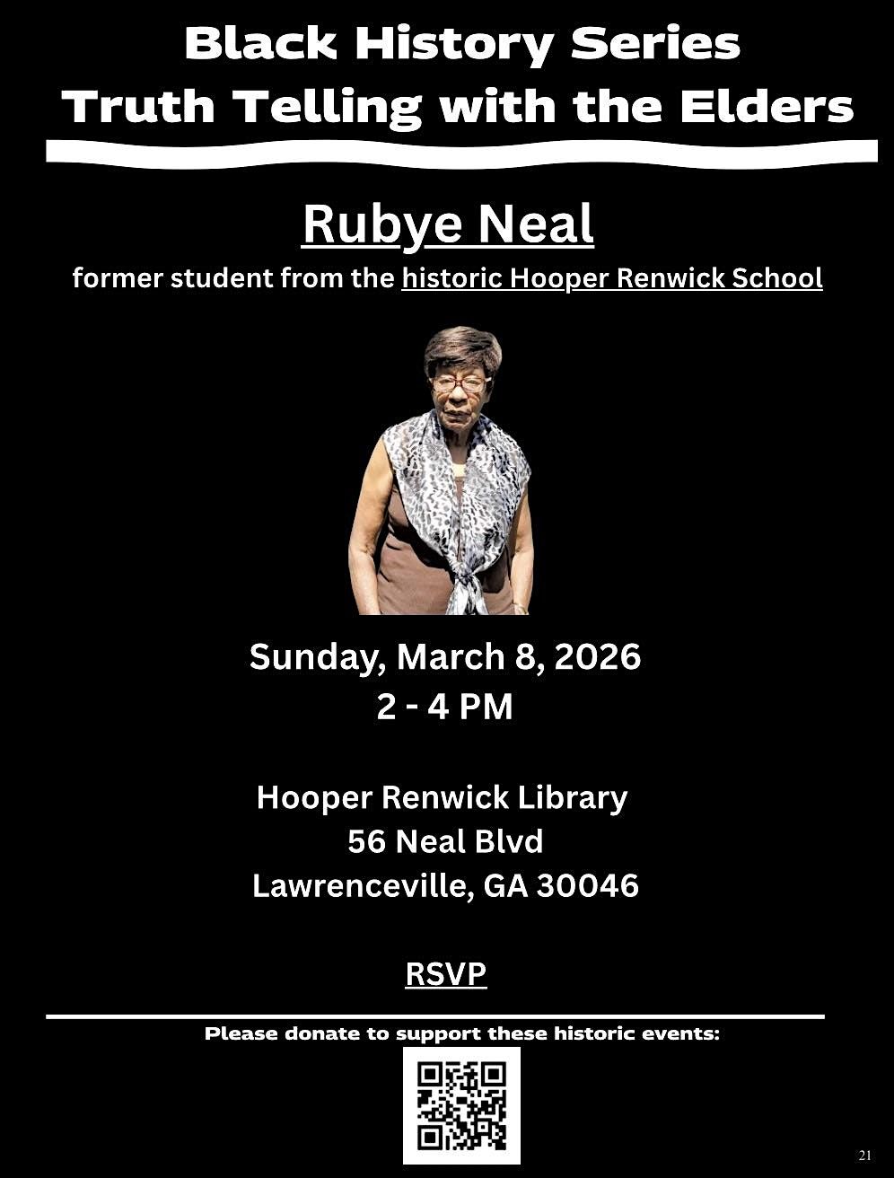 Join us for a powerful gathering where , a former student from the historic , will share Black HERstory.Truth Telling with the Elders is a powerful four-part storytelling and learning series honoring the voices, wisdom, and lived experiences of Black elders across Gwinnett County and the greater Atlanta region.