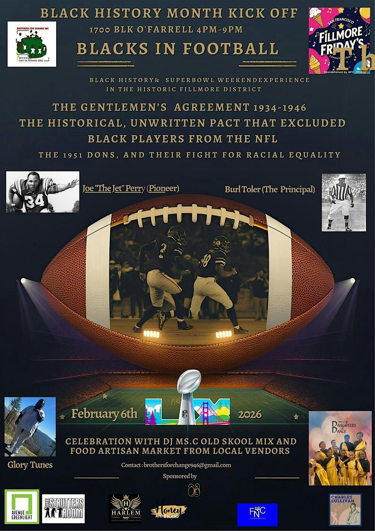 Come enjoy the Fillmore Black History Superbowl Sixty Experience Music, Dance ,Food and Games. You can be a Vendor