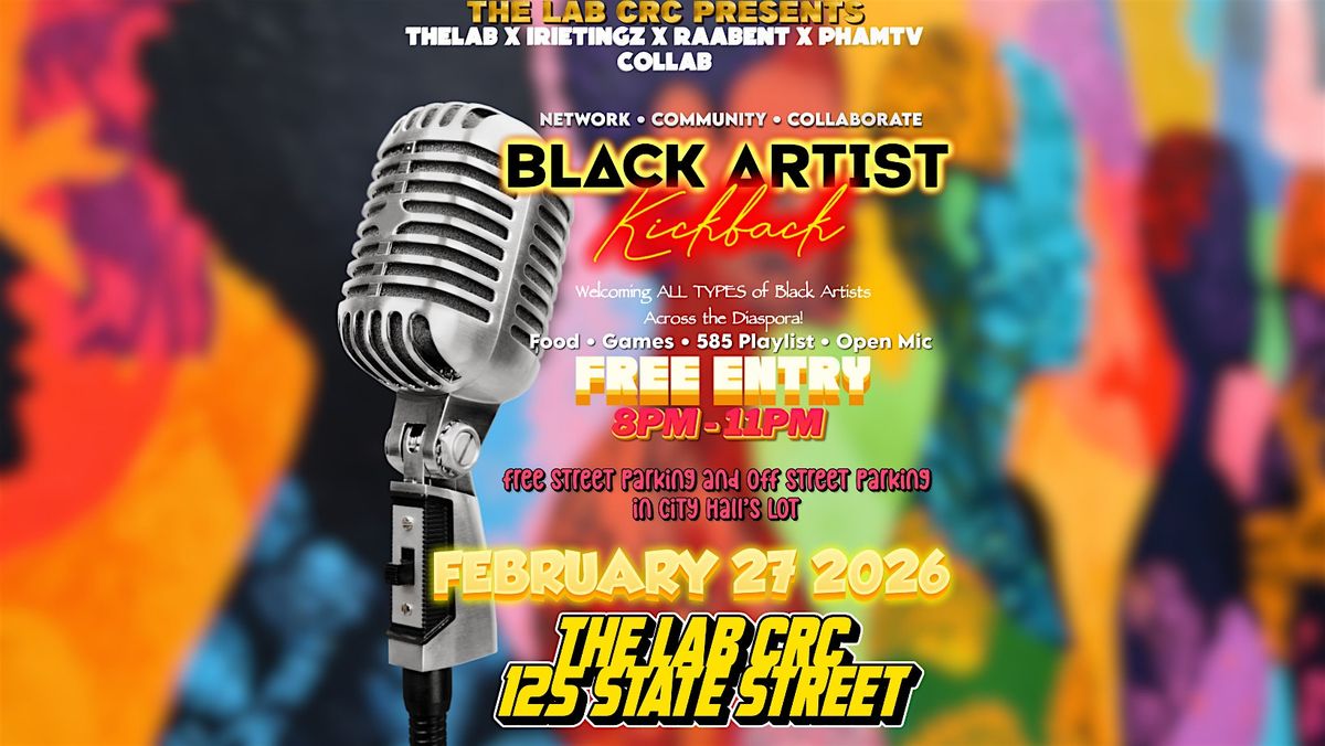 The Lab's 2nd Annual Black Joy Weekend will start off with a Black Artist Kickback -Welcoming all types of Black Artists ACROSS the Diaspora!