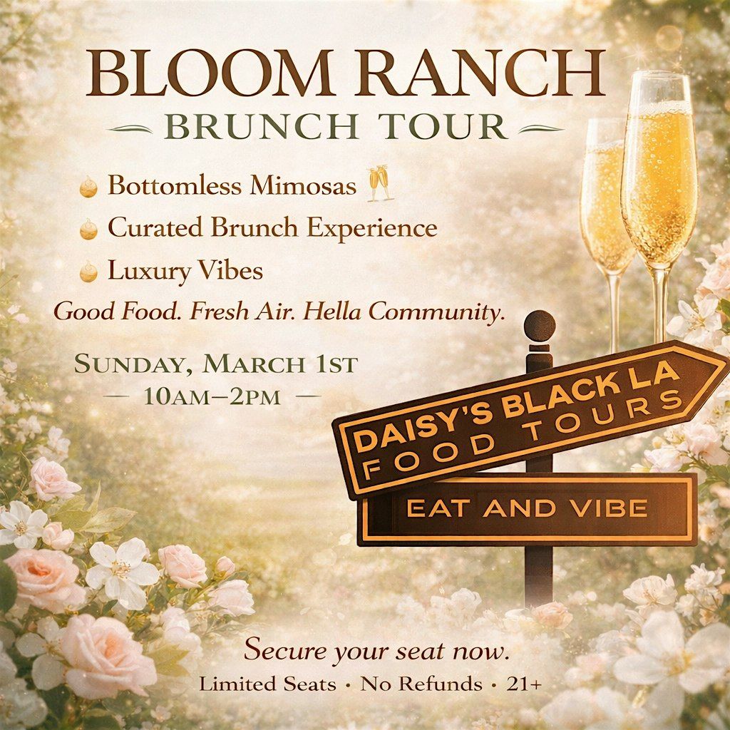 Start your day with a delicious breakfast from Tal’s, then hop on the bus as we head to the largest Black-owned ranch in Southern California Bloom Ranch for a beautiful day of culture, connection, and vibes. Enjoy food, cocktails, trivia, and prizes while we soak in the scenery. We’ll wrap it all up with sweet treats from Southern Girl Desserts on the ride back.