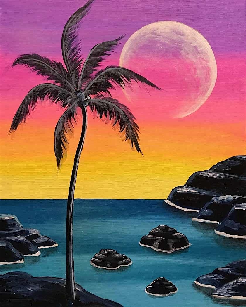 Your seat price includes an artist instructor who will walk you step-by-step through creating your own masterpiece as well as all needed painting supplies. We have a bar that sells beer, wine and limited cocktails & mocktails. Must be 21+ with a valid ID to purchase alcohol. A limited variety of snacks are available for purchase as well. Outside snacks and non-alcoholic beverages are permitted.