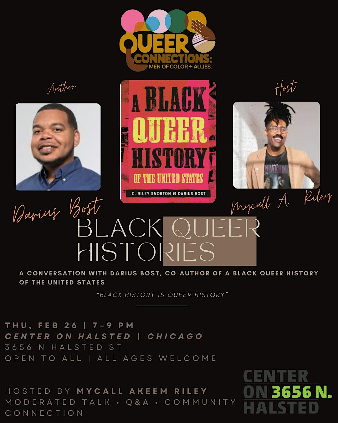 Queer Connections: Men of Color + Allies would like to host an intimate book launch and author conversation celebrating the work of Darius Bost, award-winning scholar and co-author of a groundbreaking new book that centers Black queer voices across U.S. history.