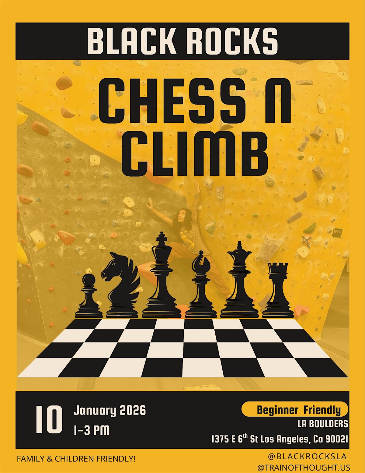 Come join us for an epic climbing event at LA Boulders! Black Rocks & Train of Thought Present: Chess n Climb