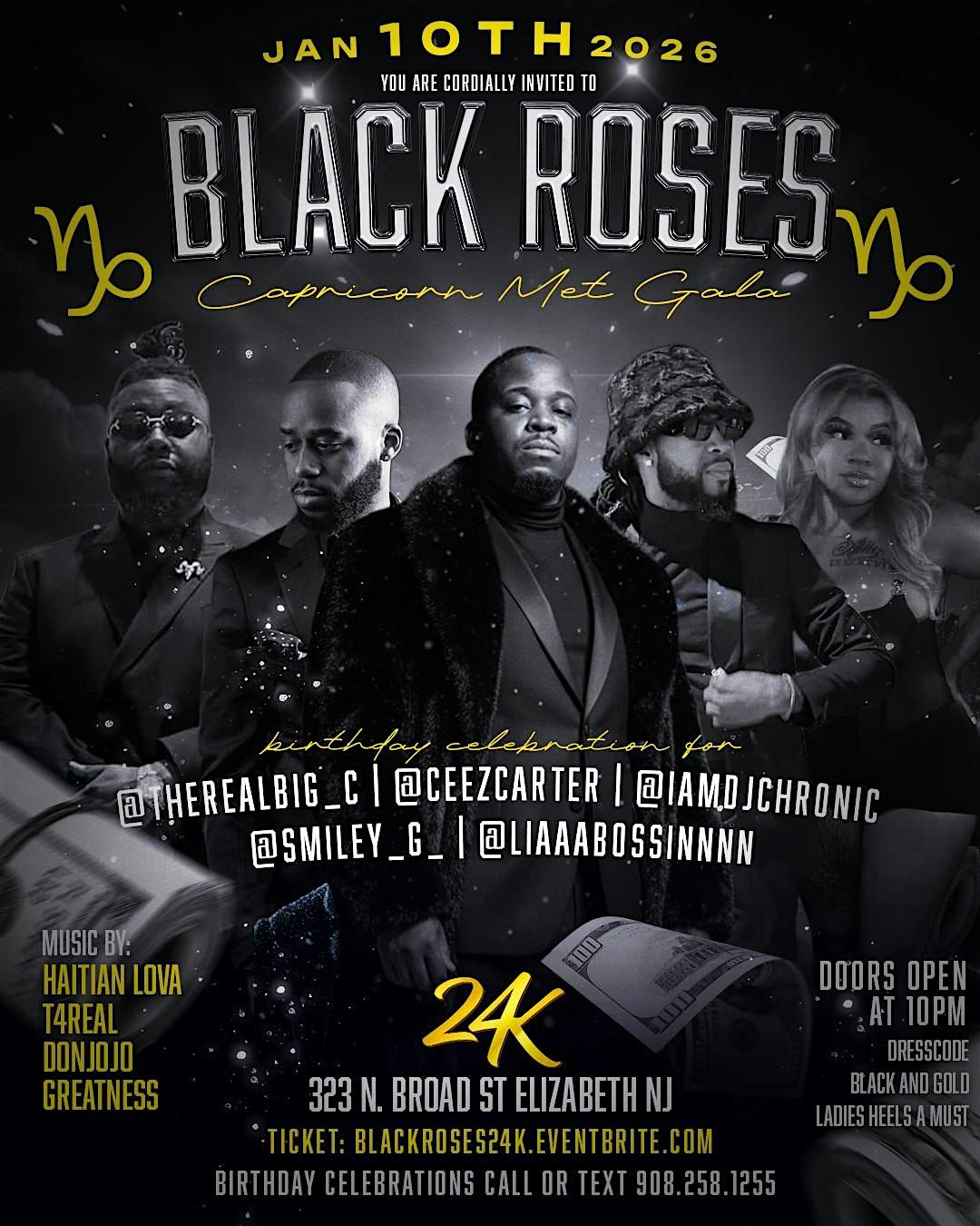 On January 10th, 2026, step into an elevated night of luxury, power, and elite energy at BLACK ROSES: The Capricorn Met Gala — where style is mandatory, vibes are exclusive, and the city’s finest come dressed to impress.