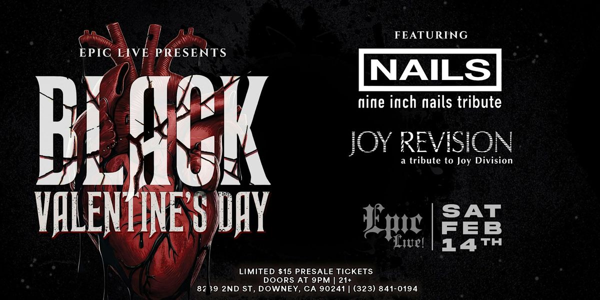 Epic Live! presents Black Valentine's Day! Featuring tributes to Nine Inch Nails and Joy Revision. A night of darkness, distortion, and devotion, where love will tear you apart and feel you from the inside.