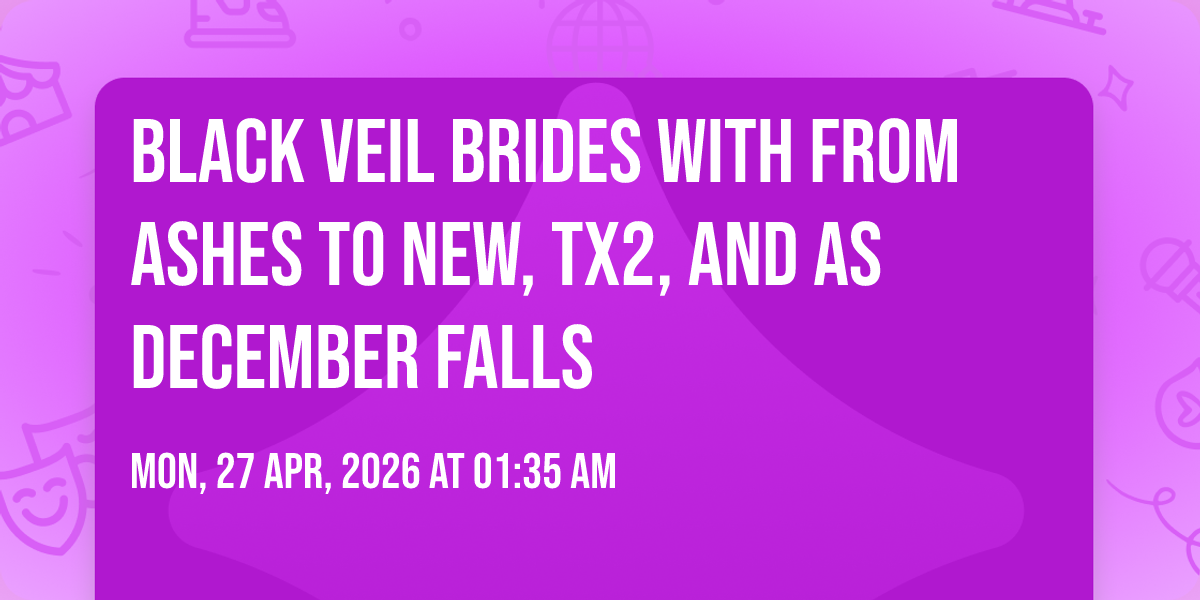 ๐ Location: 39.5226, -119.78๐ Prepare to be amazed at Black Veil Brides with From Ashes To New, TX2, and As December Falls, the most anticipated gathering of the season! ๐ Set against the stunning backdrop of Grand Sierra Resort in vibrant Reno, NV, this event promises to redefine your expectations. ๐ Mark your calendars for April 27th, 2026 at 01:35 AM and get ready to immerse yourself in an atmosphere of wonder and excitement. โจ From the moment you arrive, you'll be transported into a world where memories are made and stories come alive. They have crafted an experience that perfectly harmonizes entertainment, innovation, and community spirit. ๐ Join us as we create moments that will be discussed for years!