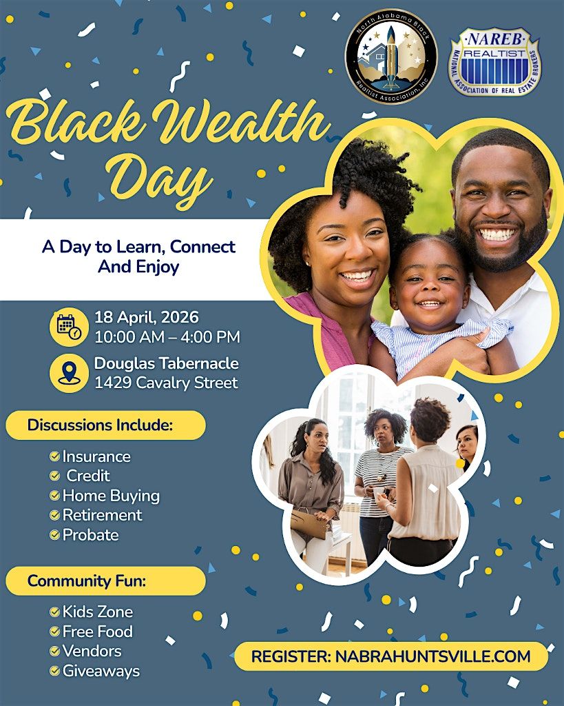 Unlock the power of financial knowledge at our black wealth community event. Enjoy free food, prizes, and activity for the kids while you learn. Leave empowered with tools to build wealth. Sessions will include credit, insurance, homebuying, probate, etc. Free one on one session with attorney knowledgable about the probate process. Activities for the kids will be available so that you can focus on learning and planning your financial future. Register now and invest in your future!