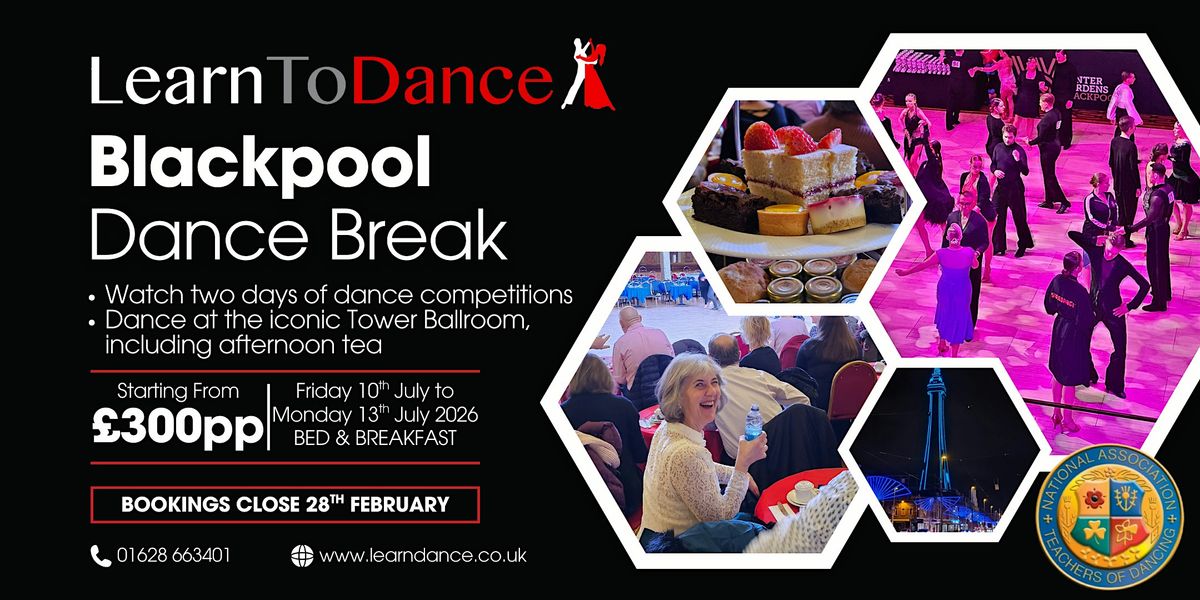 Join us this summer from Friday 10th to Monday 13th July 2026 for an unforgettable dance weekend break in Blackpool — packed with seaside charm, world-famous venues, and the thrilling NATD Medallist of the Year competition.