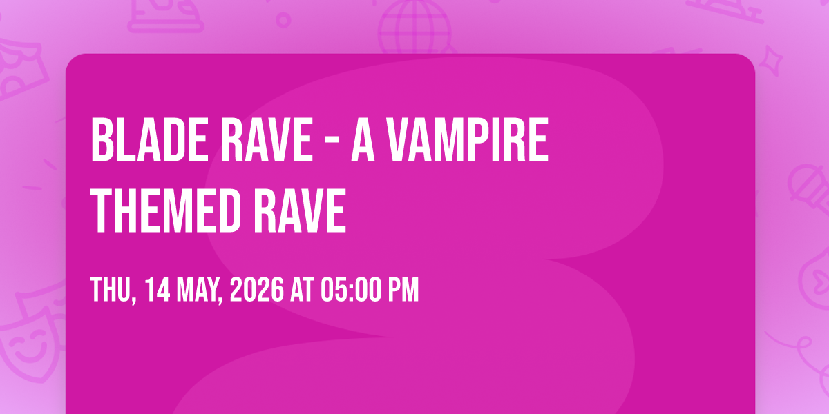 🌟 Step into a world of wonder at Blade Rave - A Vampire Themed Rave, where extraordinary moments await! 🏛️ Located at The Rock - AZ in dynamic Tucson, AZ, this event will become the talk of the town. 📅 Join us on May 14th, 2026 at 05:00 PM for a celebration that defies the ordinary. ✨ This curated experience brings together the best of entertainment, culture, and community spirit. Every detail has been thoughtfully planned to ensure an unforgettable experience for all our guests. 🎯 Take advantage of this opportunity to be part of something special. 🎊 Early registration is recommended as space is limited!http://maps.seatics.com/GeneralAdmissionEvent_2018-10-03_1713_SVGC_tn.gif