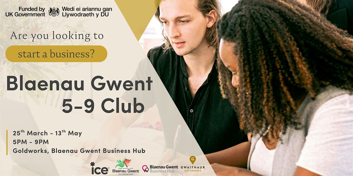 This 5-9 Club will be taking place at Goldworks, Blaenau Gwent Business Hub. Each session will start at 5pm and finish by 9pm. Refreshments will be provided!