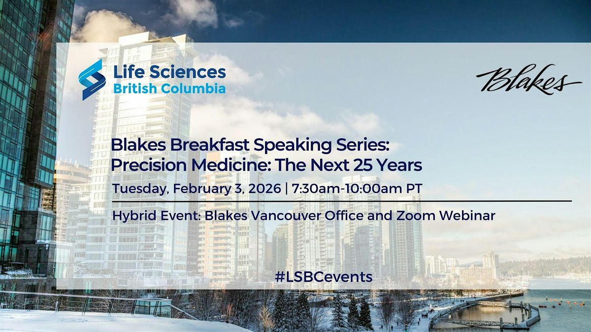 Blakes Breakfast Speaking Series: Precision Medicine: The Next 25 Years is happening on Tuesday, February 3, from 7:30 AM – 10:00 AM PT in person, or 8:00 AM – 9:30 AM PT online.