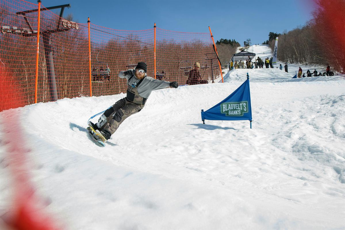 Blauvelt’s Banks is a two-day grassroots banked slalom snowboard and snowskate event that brings together riders of all ages and abilities for fast laps, big energy, and classic community vibes at the Timberline Lodge at Bolton Valley.