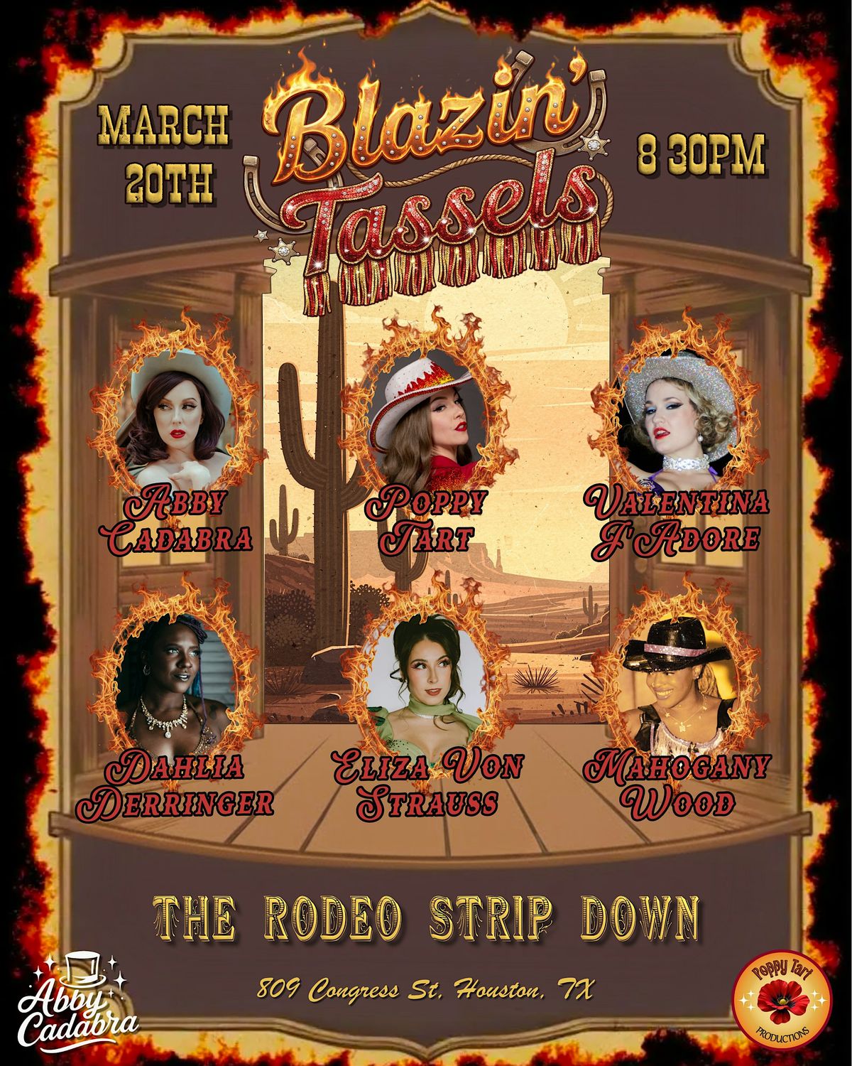 Abby Cadabra and Poppy Tart invite you to Blazing Tassels: a high-energy rodeo-themed burlesque spectacular at Henke & Pillot.