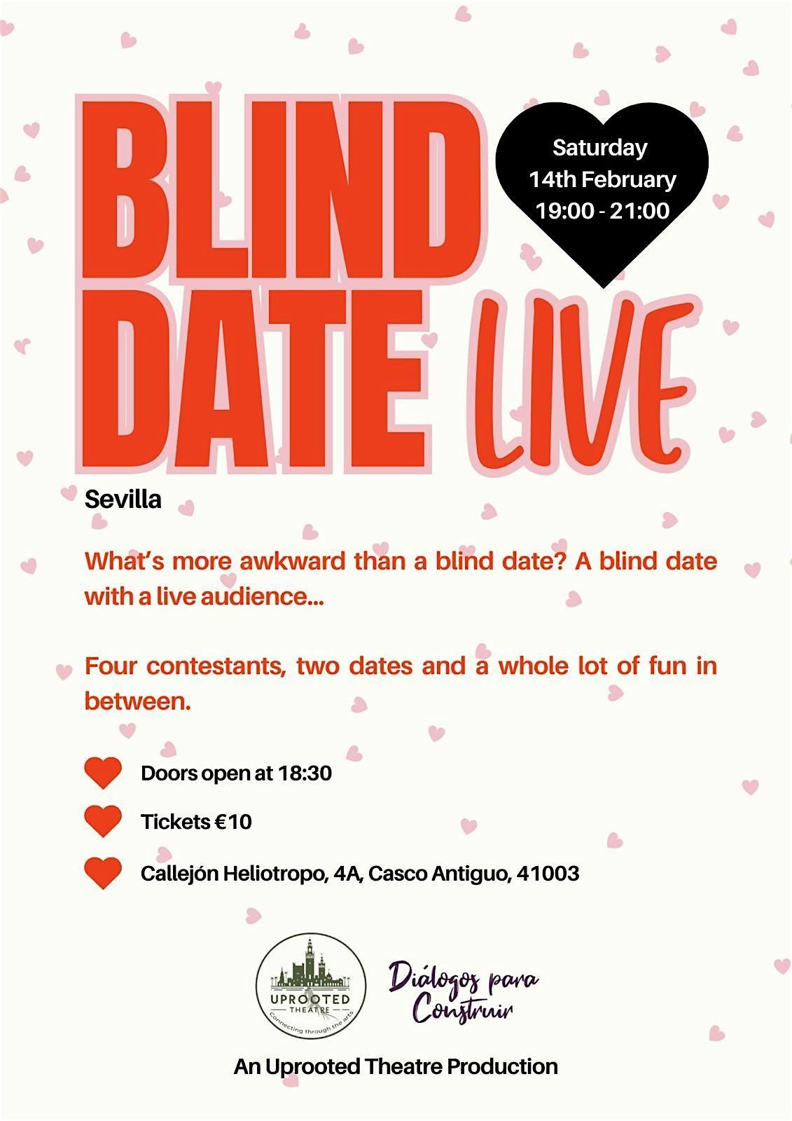 Ready for a night full of awkward dating moments? Join us at Uprooted Theater for Blind Date Live! The audience gets to play matchmaker as our four strangers take the stage for their first "date" live! Watch the sometimes sweet, sometime awkward, and always hilarious moments as our hosts help the pairs get to know each other. This event promises a fun-filled evening with surprises at every turn. Blind Date Live is the place to be!