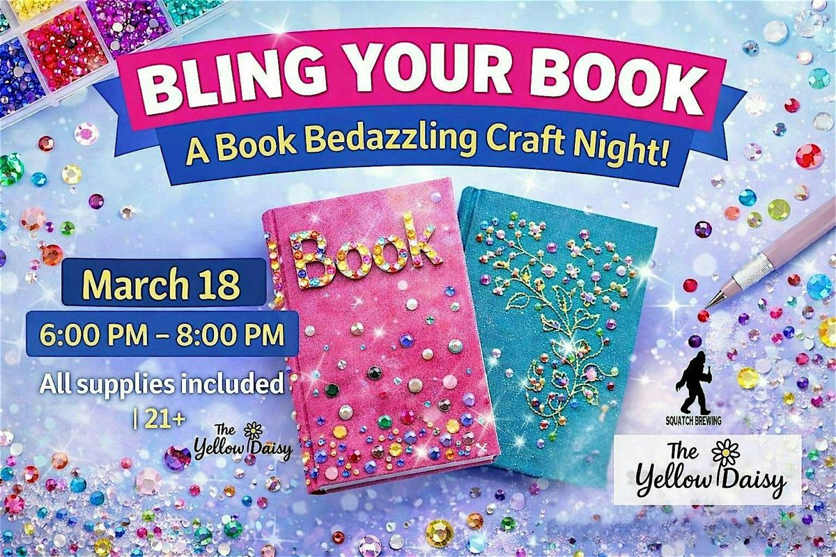 Join us for a fun, creative, 21+ craft night where you’ll bedazzle your book cover using colorful rhinestones while enjoying craft beer at Squatch Brewing.