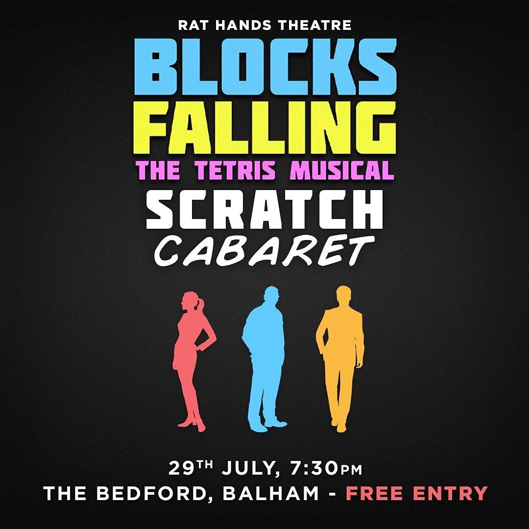 For the first time ever, we're going to be staging several songs from Blocks Falling: The Tetris Musical. The Scratch Cabaret will be FREE ENTRY with a big focus on feedback - we want to hear from you about what we can do to make the show better as we continue to develop it! Anyone who just wants to come and enjoy some free new musical theatre is also welcome!