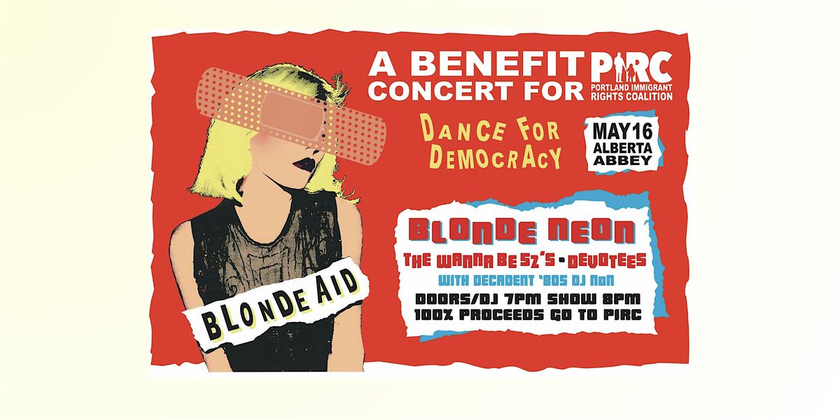 You've seen the news. Watched the videos. Maybe witnessed in-person injustices targeting immigrant families in our own backyard. Blonde Neon asked "what can we do?" So we brought in our friends The Wanna Be-52’s, DEVOtees, and Decadent ‘80s to host a benefit concert that will donate 100% of proceeds to the Portland Immigrant Rights Coalition (PIRC). This grassroots Portland organization runs a 24/7 hotline, provides legal support, and mobilizes volunteers to defend immigrant families across Oregon.