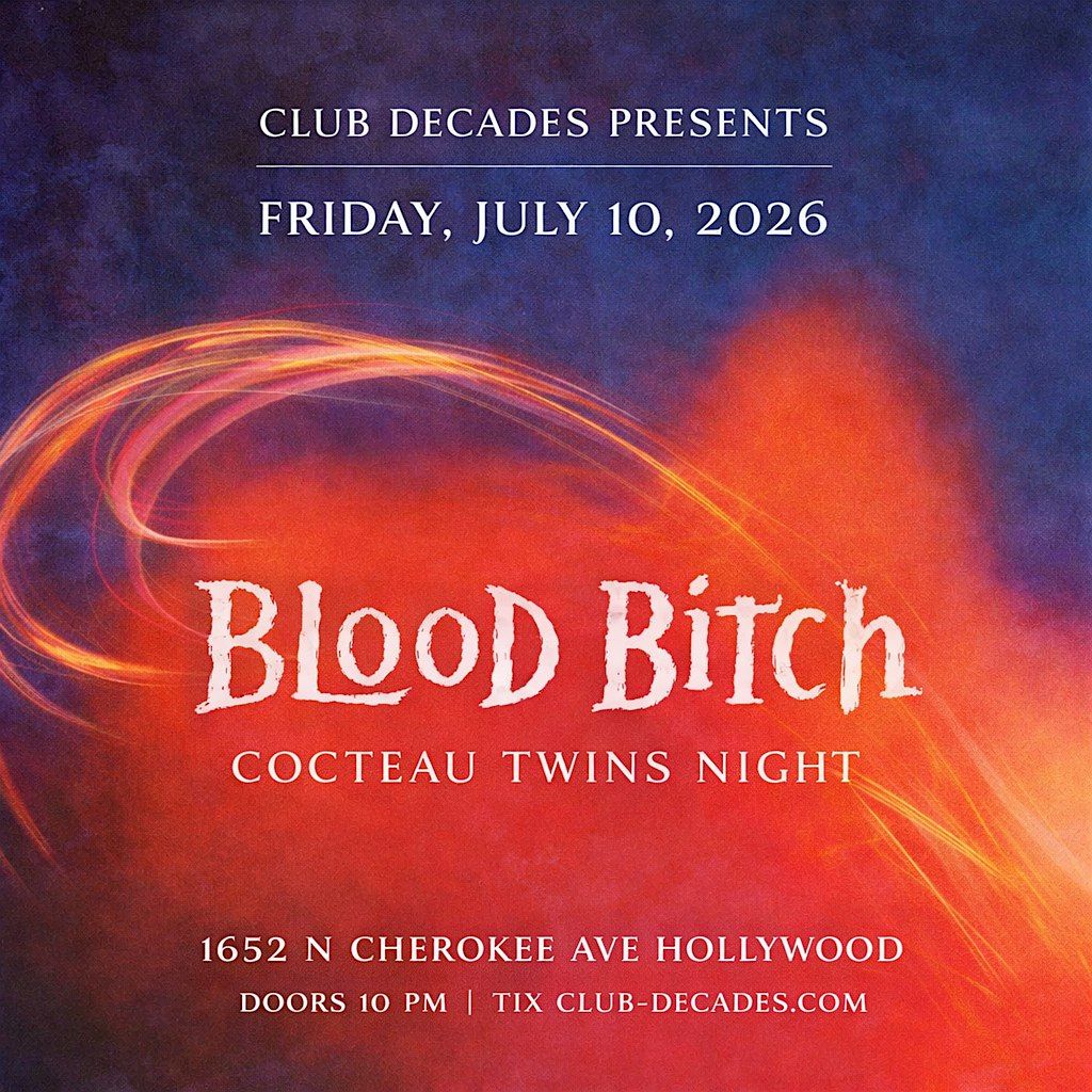Lose yourself in a night of shimmering guitars, celestial vocals, and ethereal atmosphere as Club Decades presents BLOOD BITCH — Cocteau Twins Night. A dance floor soaked in reverb, romance, and otherworldly soundscapes all night long.