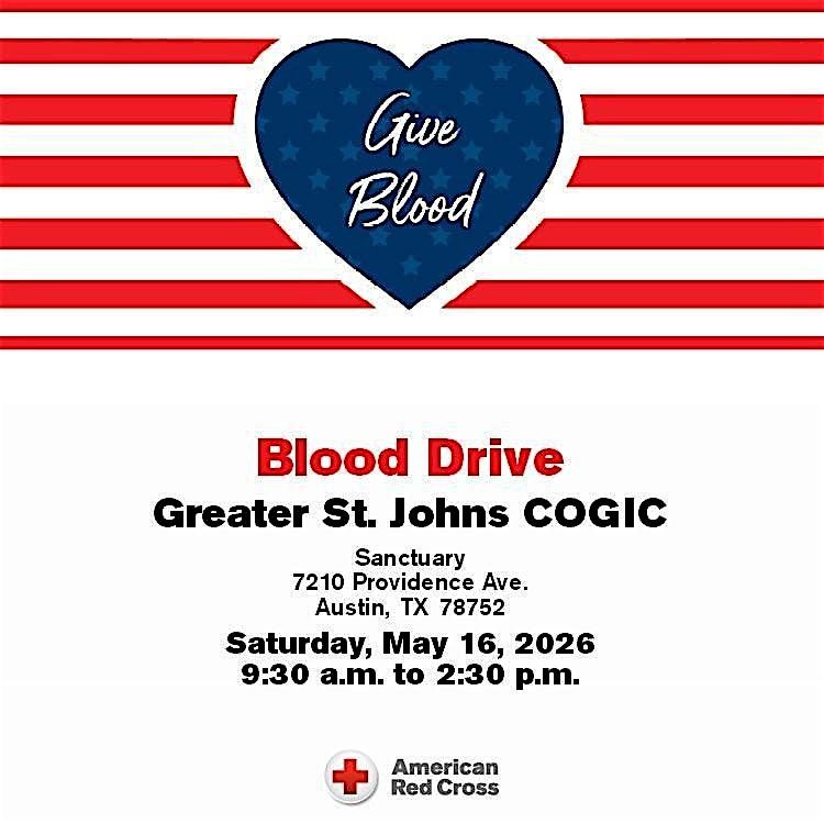 Join us in person for a Blood Drive at Greater St John COGIC happening in partnership with the American Red Cross! It's a great chance to give back and help save lives in our community. Whether you're a first-timer or a regular donor, everyone is welcome. Come out, roll up your sleeve, and make a difference with us!