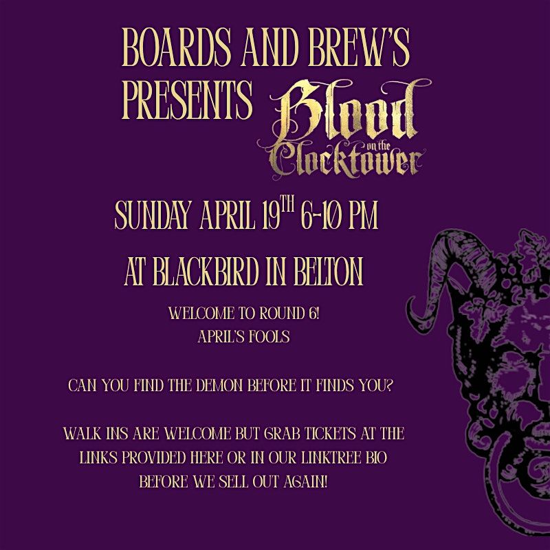 Join us at Blackbird books and Spirits as Boards & Brews hosts Demonic M**der mystery night! This will be a special event game with a twist!