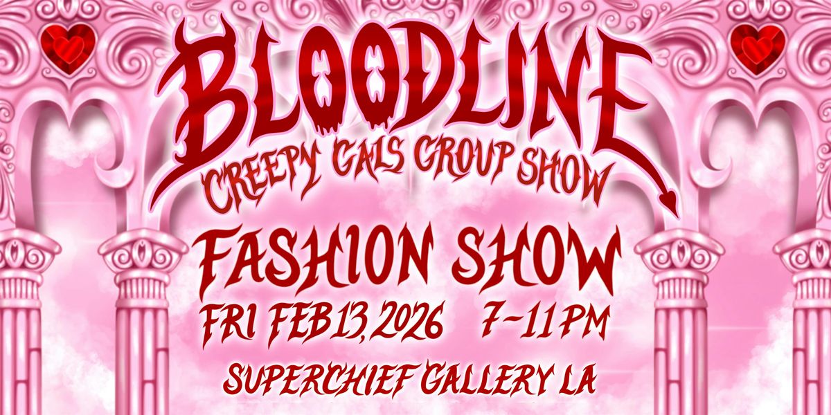 As part of BLOODLINE Group Show, Creepy Gals and Superchief Gallery present a Valentine-inspired fashion show celebrating lovecore, camp, and chosen-family creativity. Hand selected Designers take the runway with bold red and pink looks that blend romance, fantasy, humor, and edge, bringing the Creepy Gals universe to life through fashion.