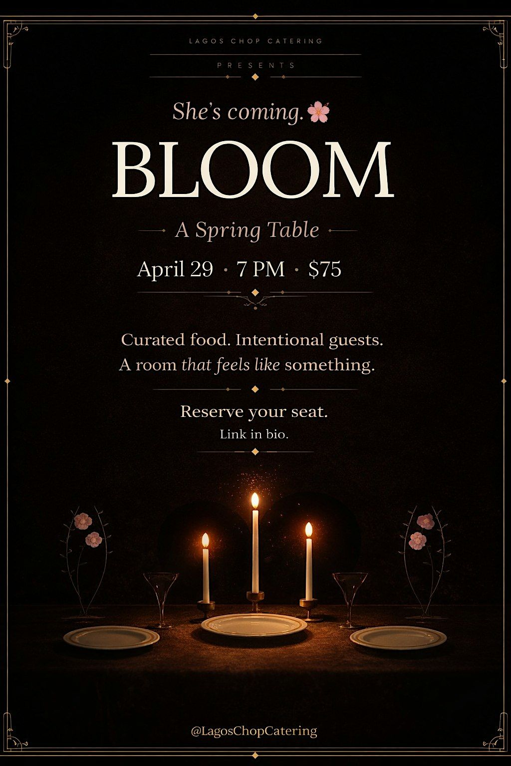BLOOM is an intimate candlelight dining experience for 20 guests — curated, intentional, and designed to feel like nothing else in the room.