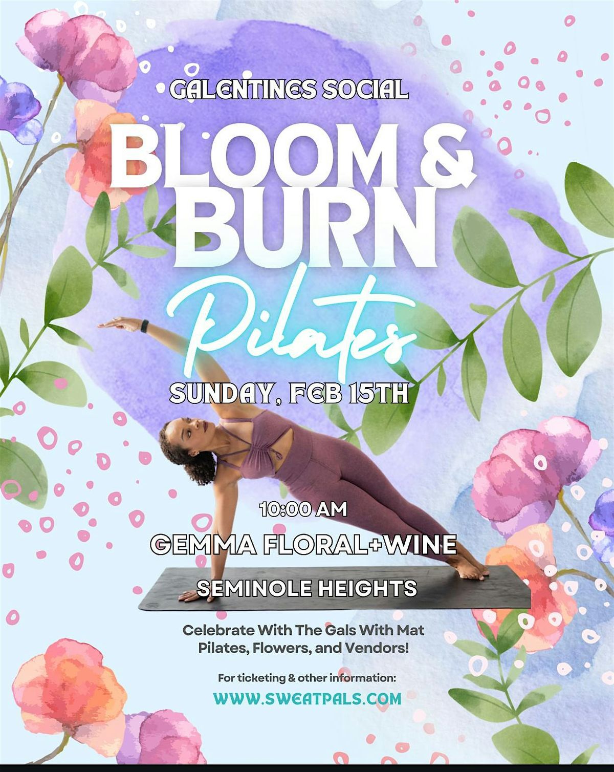 Gather your favorite people for a morning that combines mat Pilates, beautiful florals, and great company at Gemma Floral + Wine in Seminole Heights.