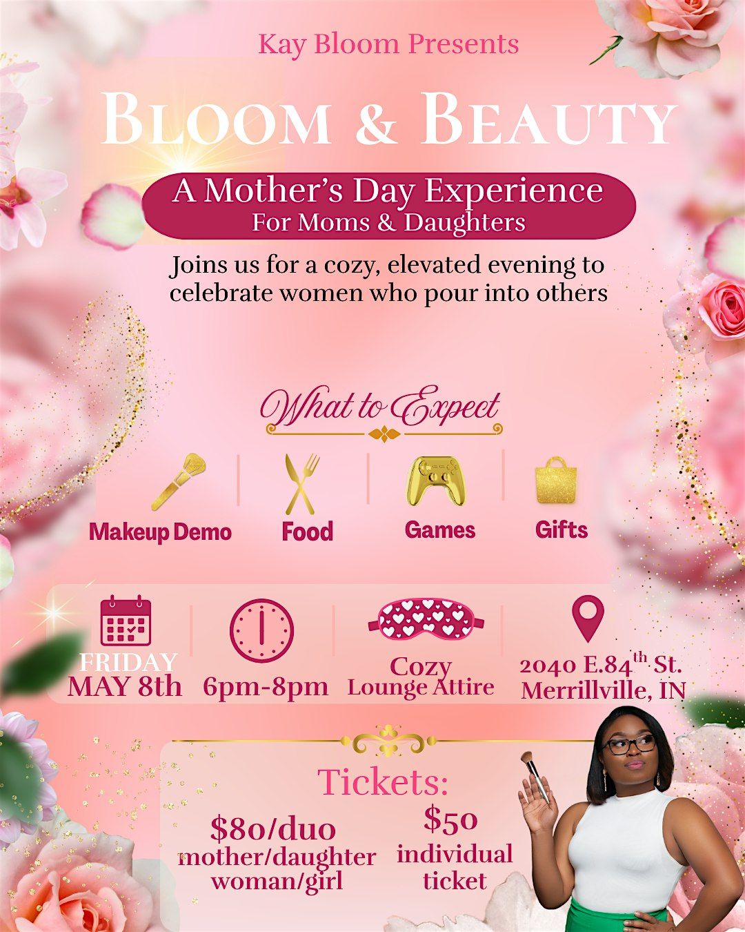 Join us for an intimate and elevated evening designed to celebrate the beauty, strength, and impact of moms, mentors, and the next generation of young women. Bloom & Beauty is more than a makeup party—it’s a cozy, joy-filled experience centered on connection, confidence, and growth.