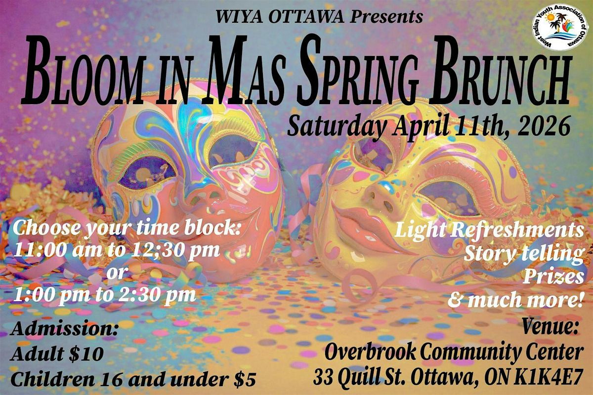 Bloom in Mas Spring Brunch is an opportunity for members of public to learn about the 2026 Ottawa Junior Carnival taking place in August 2026. This year's Ottawa Junior Carnival is the portrayal of some of the Caribbean's traditional Masquerade Characters.