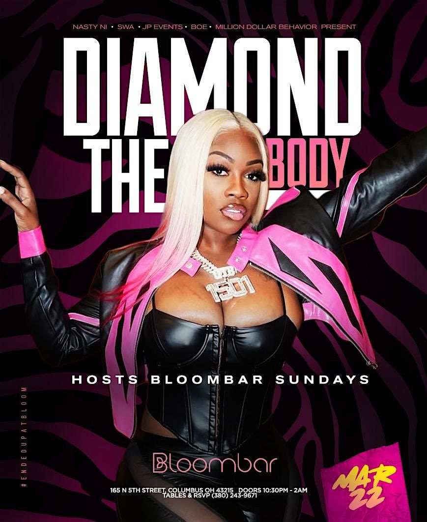 BREAKING NEWS DIAMOND THE BODY TAKES OVER @bloombarcolumbus on Sundays ️ Sunday March 22nd @diamondthebodyy will be hosting Bloo