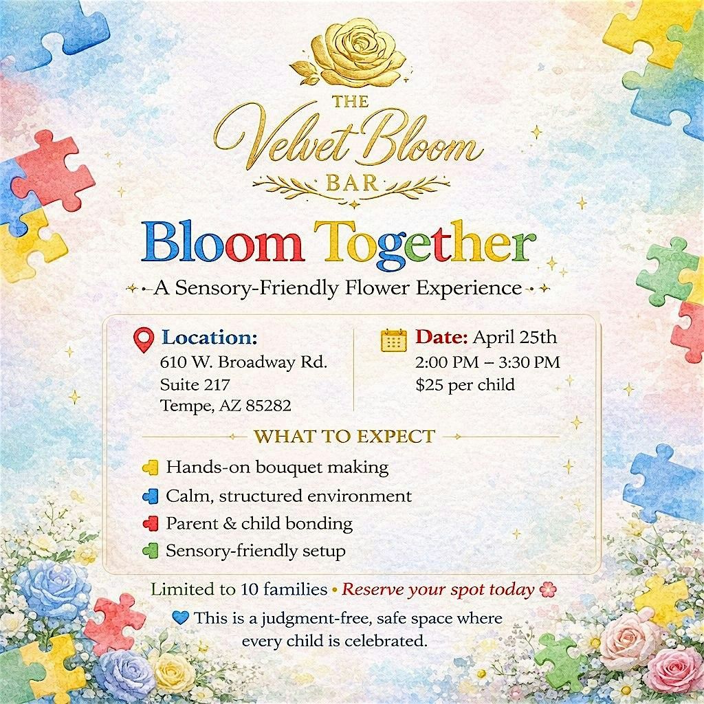 Join us for a calm and welcoming experience designed especially for parents and children with autism. Bloom Together is more than just a flower event, it is a thoughtfully curated sensory experience where families can connect, create, and enjoy a peaceful environment together.