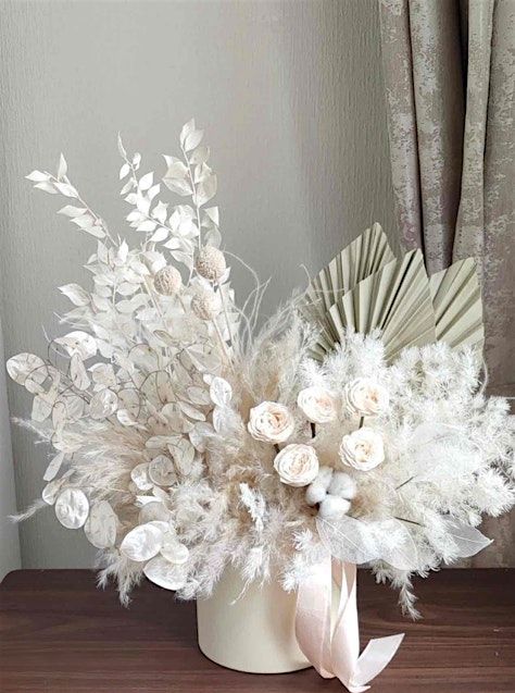 Guests will design a dried floral arrangement inspired by soft neutrals, natural textures, and airy movement.