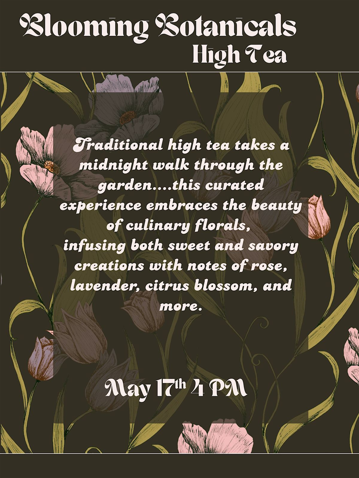 A celebration of spring in full expression, this tea highlights fresh herbs, edible flowers, and delicate botanical flavors woven throughoutAbout this Event
