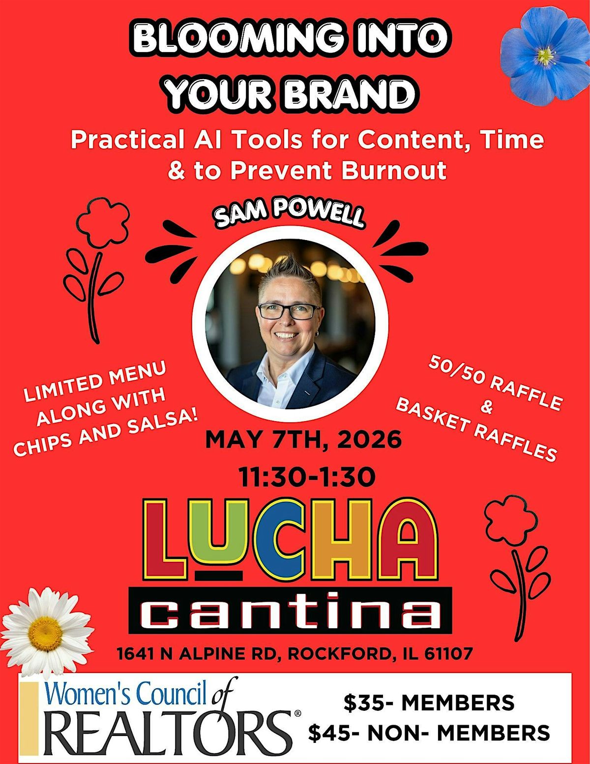 Join WCR at Luncha Cantina on 5/07. Sam Powell will discuss practical AI tools to create content, protect your time, and prevent burnout.About this Event