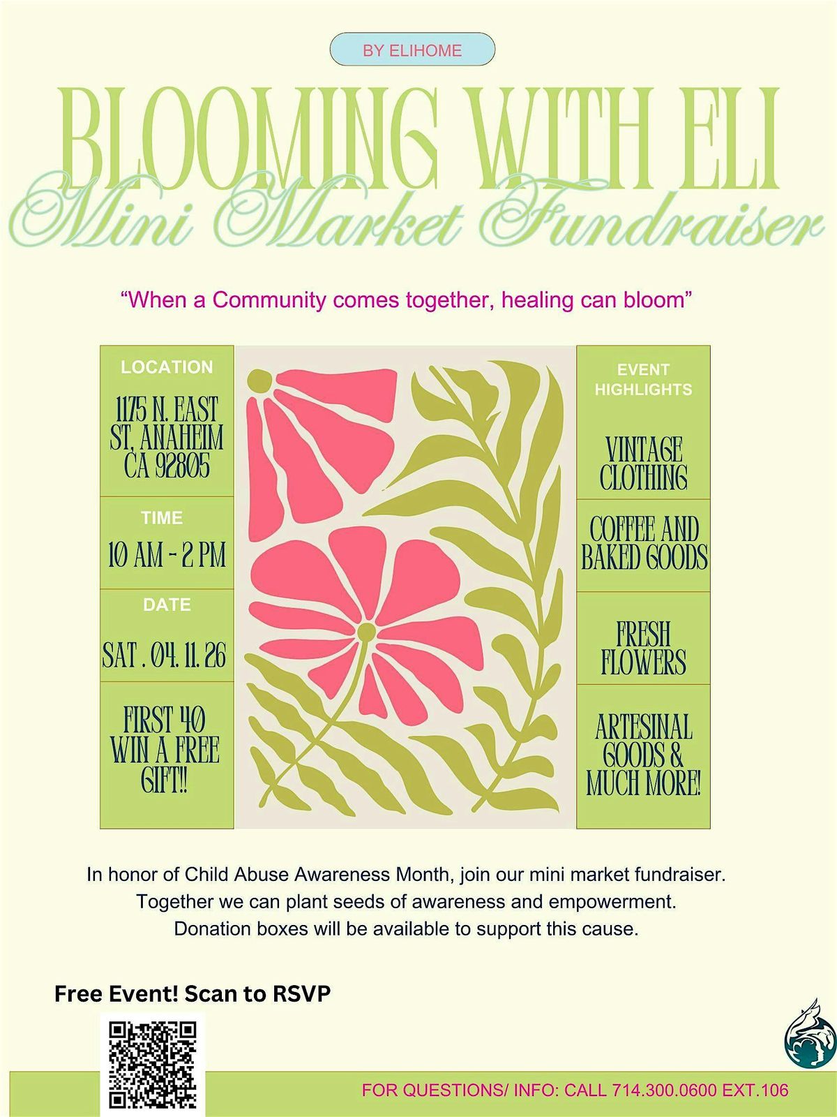Join us for Blooming with Eli, a community Mini Market Fundraiser bringing people together to shop local, support youth, and raise awareness for Child Abuse Awareness Month.