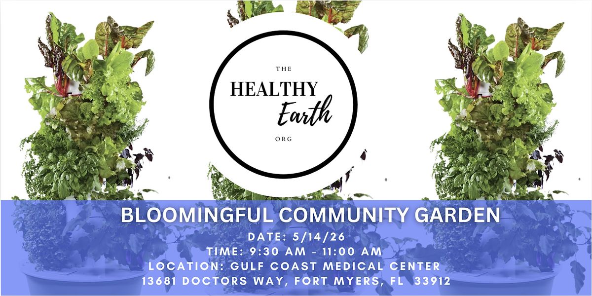 Directions: Bloomingful Community Garden has a new location. It is now located where the emergency entrance to Gulf Coast Medical Center to the right hand side where you can see picnic tables and sitting area. You’ll see signs and team members near the garden space to welcome you!