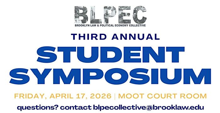 Welcome to the Third Annual Brooklyn Law and Political Economy Collective Student Symposium! This Symposium will showcase student legal scholarship and provide a forum for students and faculty to build academic discourse, collaboration, and community. Schedule to come.