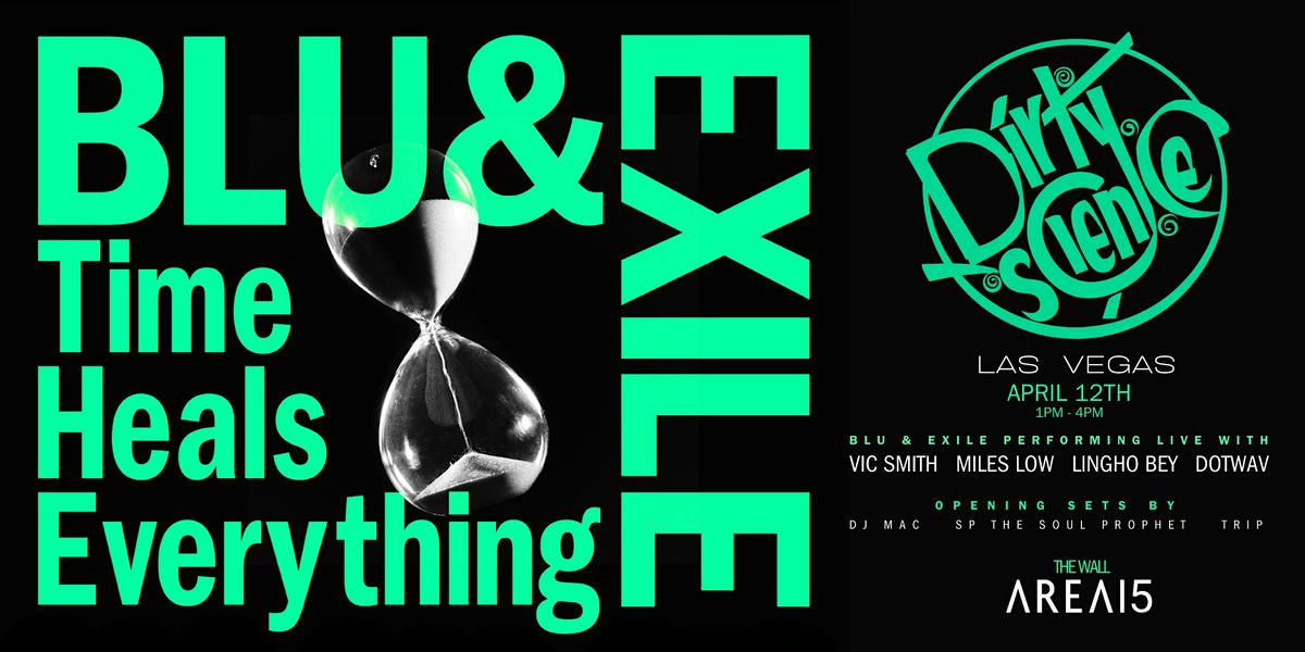Blu & Exile bring the Time Heals Everything Tour 2026 to AREA15 for a powerful afternoon of live music, lyricism, soul, and culture. Featuring performances by Blu & Exile, Vic Smith, Miles Low, Dotwav, Lingho Bey, DJ Mac, SP The Soul Prophet, and Trip, this Las Vegas event creates an unforgettable experience for true lovers of hip hop and live artistry.