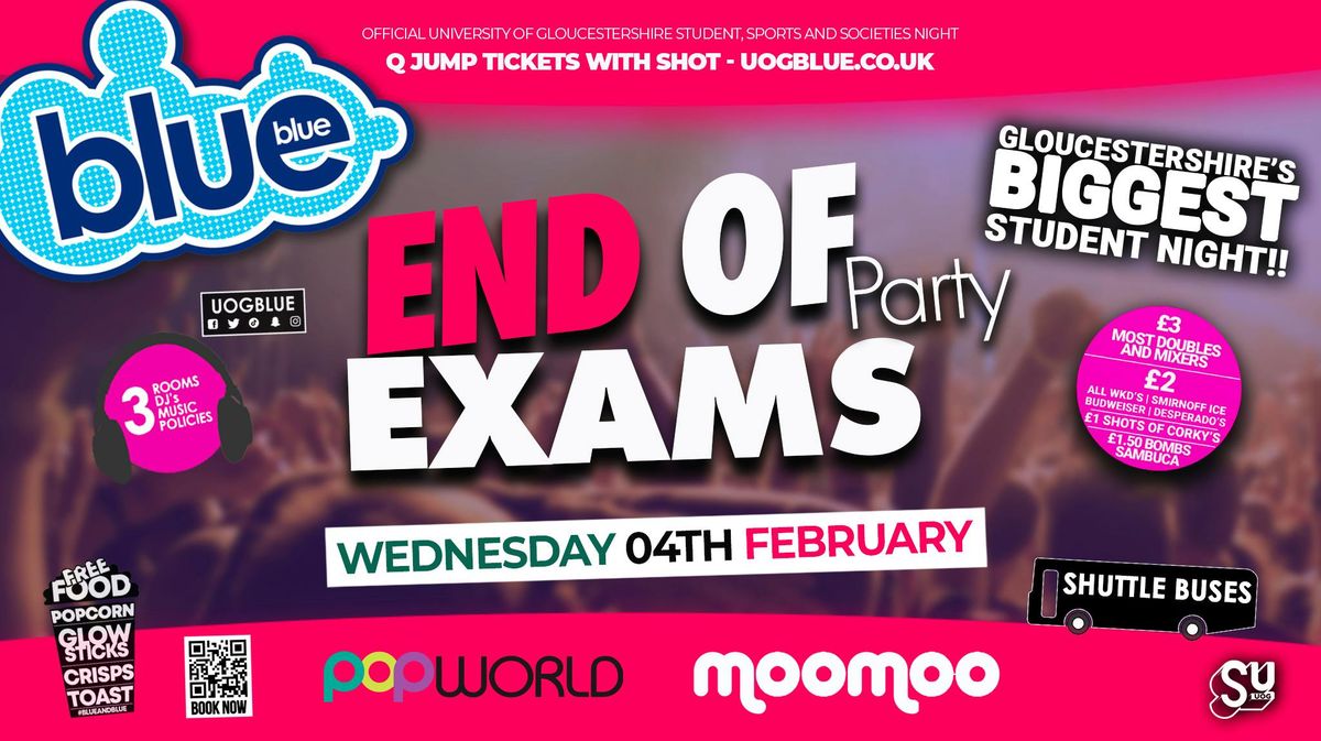 Blue & Blue Wednesdays \ud83d\udc99 END OF EXAMS PARTY!! \ud83e\udd29 Gloucestershire\u2019s Biggest Student Night! \ud83e\udd2f