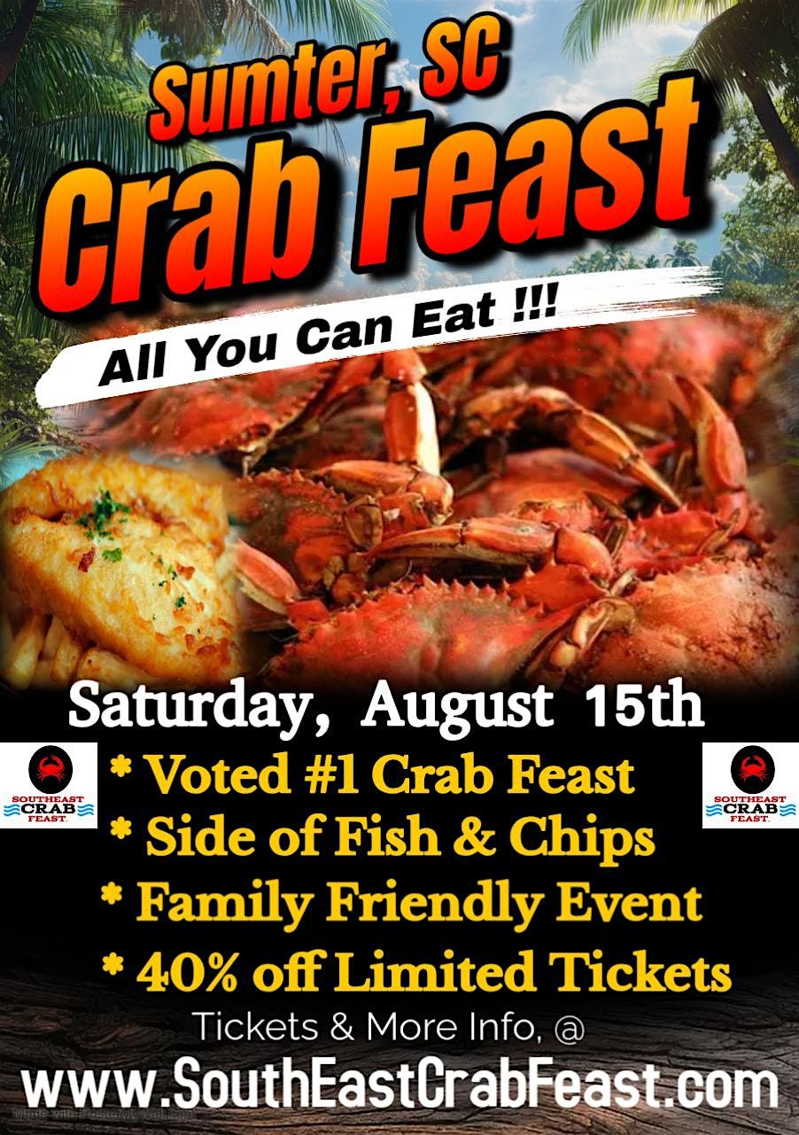 ALL YOU CAN EAT BLUE CRABS & COLD BEER!!!! Please join us for the SouthEast Crab Feast event in Sumter, SC on Saturday, August 15th at Sumter Original Brewery. This event offers the Low Country Coastal Heritage of outdoor cooking of fresh seafood. This highly anticipated event will offer ALL YOU CAN EAT fresh Blue Crabs, one side of Fish & Chips, one complimentary Craft Beer or beverage and a Family Friendly Environment for the entire family.