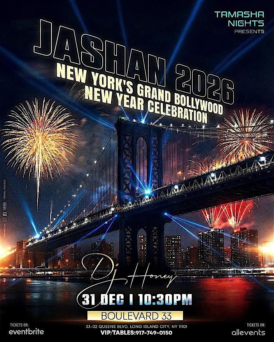 Tamasha Nights is taking over Long Island City for a dazzling NYE celebration β bringing our signature high-energy vibe to Boulevard 33 for a night packed with music, lights, and unforgettable moments as we welcome 2026!