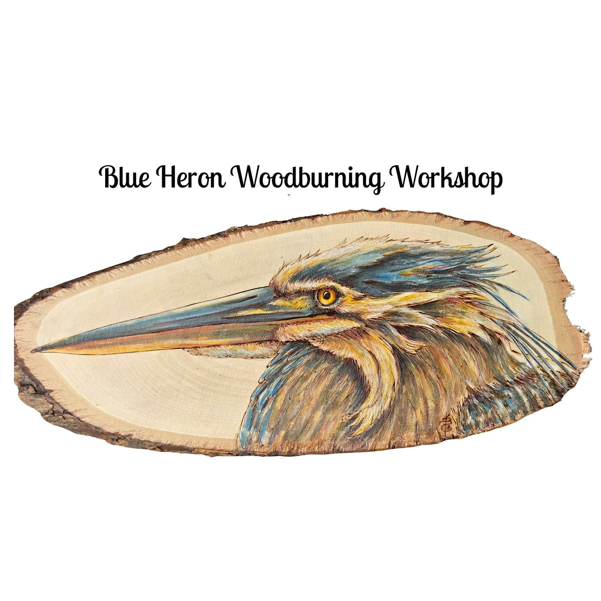 Create a Blue Heron woodburning in this fun woodburning workshop! All materials included learn, create, and take home your own art!