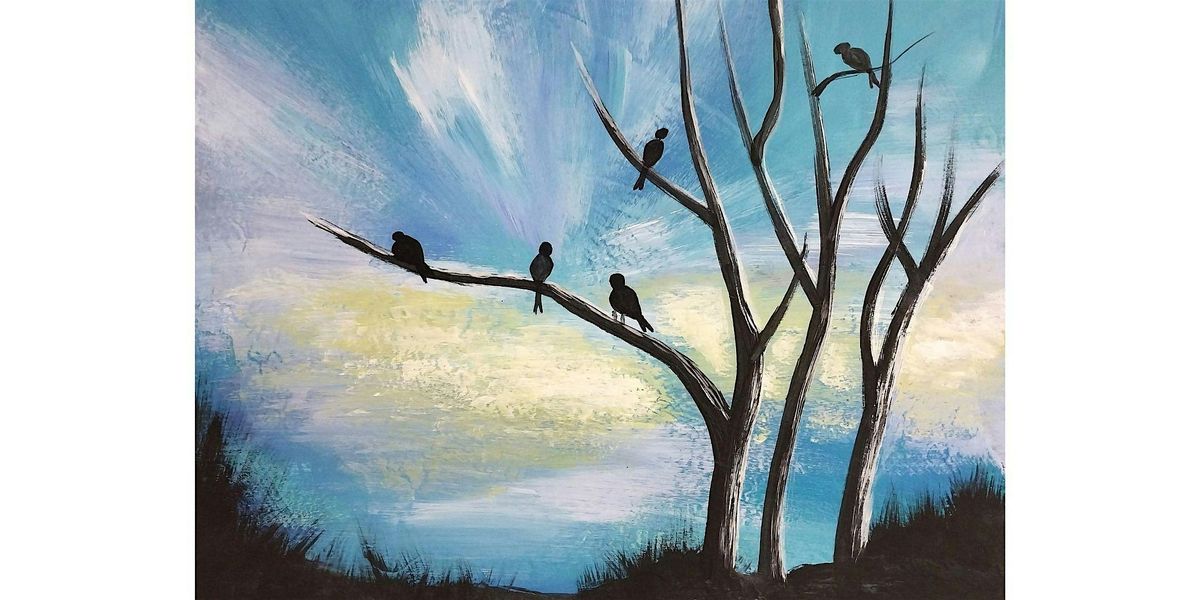 By the end of the session, you will have practiced essential skills in color mixing, brush control, layering, and composition while creating your own expressive “Blue Skies” painting to take home.