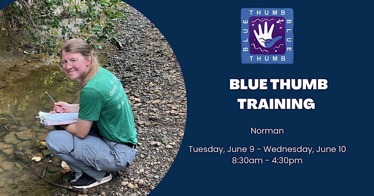 Come join us for a hands-on Blue Thumb Training event in Norman! This in-person training will take place at Location TBD. Get ready to learn all about water quality monitoring, stream ecology, and how to protect our local water resources. Whether you're a beginner or a seasoned pro, this event is perfect for anyone interested in conserving and protecting local streams. Don't miss out on this opportunity to expand your knowledge and make a difference in your community!