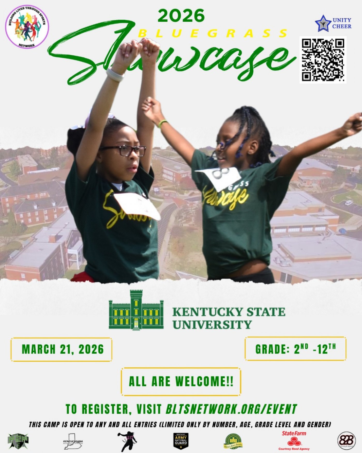 We at Building Lives Through Sports Network in conjunction with Unity Cheer, INC would like to invite you to the annual Bluegrass Showcase: Cheer Clinic.