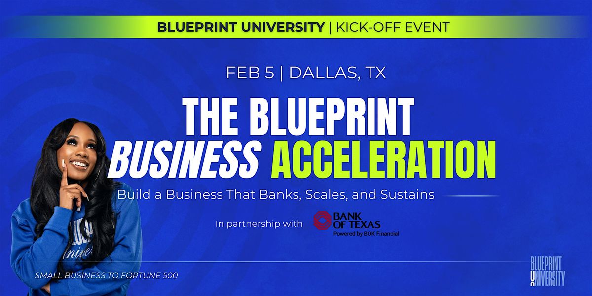 Blueprint University, in partnership with Bank of Texas, invites business owners to the kickoff of the Blueprint Business Acceleration Series—a bankability and growth series built for entrepreneurs who are already operating and ready to move from hustle to structure, capital readiness, and sustainable growth.