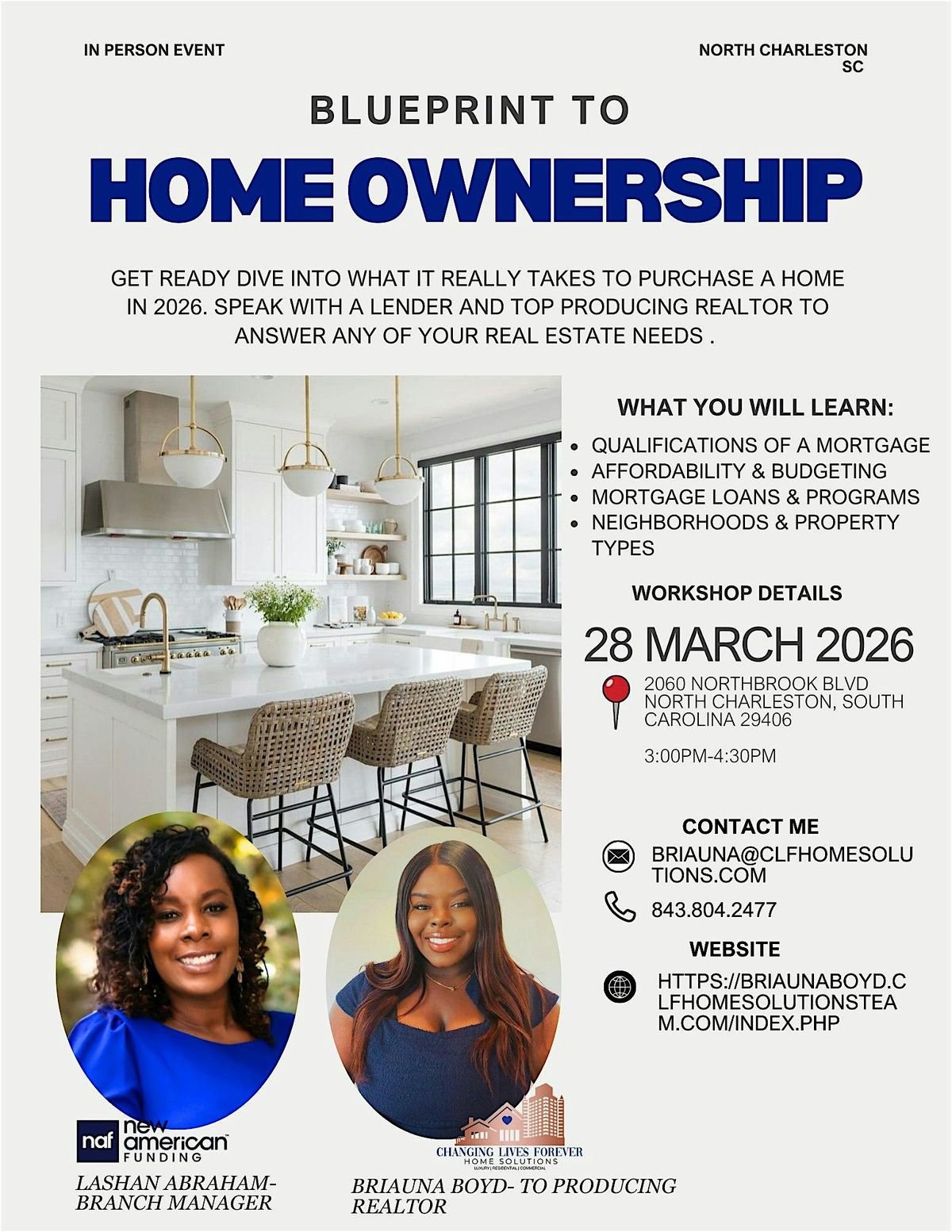 Ready to make your dream of owning a home come true? Swing by Changing Lives Forever Home Solutions on March 28, 2026 at 3:00 PM (Eastern Time) for a laid-back, info-packed session. We’ll walk you through the essentials of buying a home, answer your questions, and help you map out your path to ownership. Don’t miss this chance to get the inside scoop and start building your future!