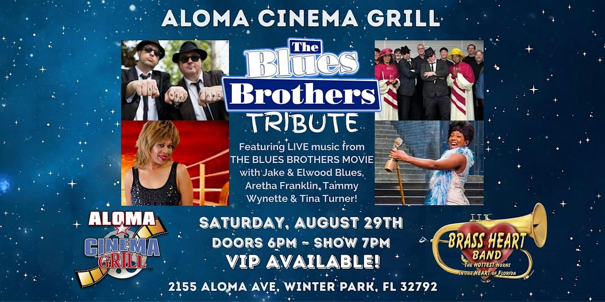 $15 GA NOW for The Blues Brothers Movie tribute, "ANOTHER MISSION FROM GOD" on Saturday, August 29th from 7-10pm at Aloma Cinema Grill. VIP SELLS OUT FAST! Get your tickets NOW!