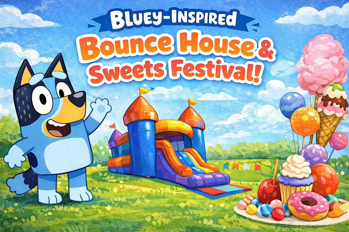 Bring the kids out for an afternoon of bouncing, sweet treats, bubbles, and family fun at our Bluey Inspired Bounce House & Sweets Festival — a playful, high-energy event designed just for kids and parents to enjoy together!