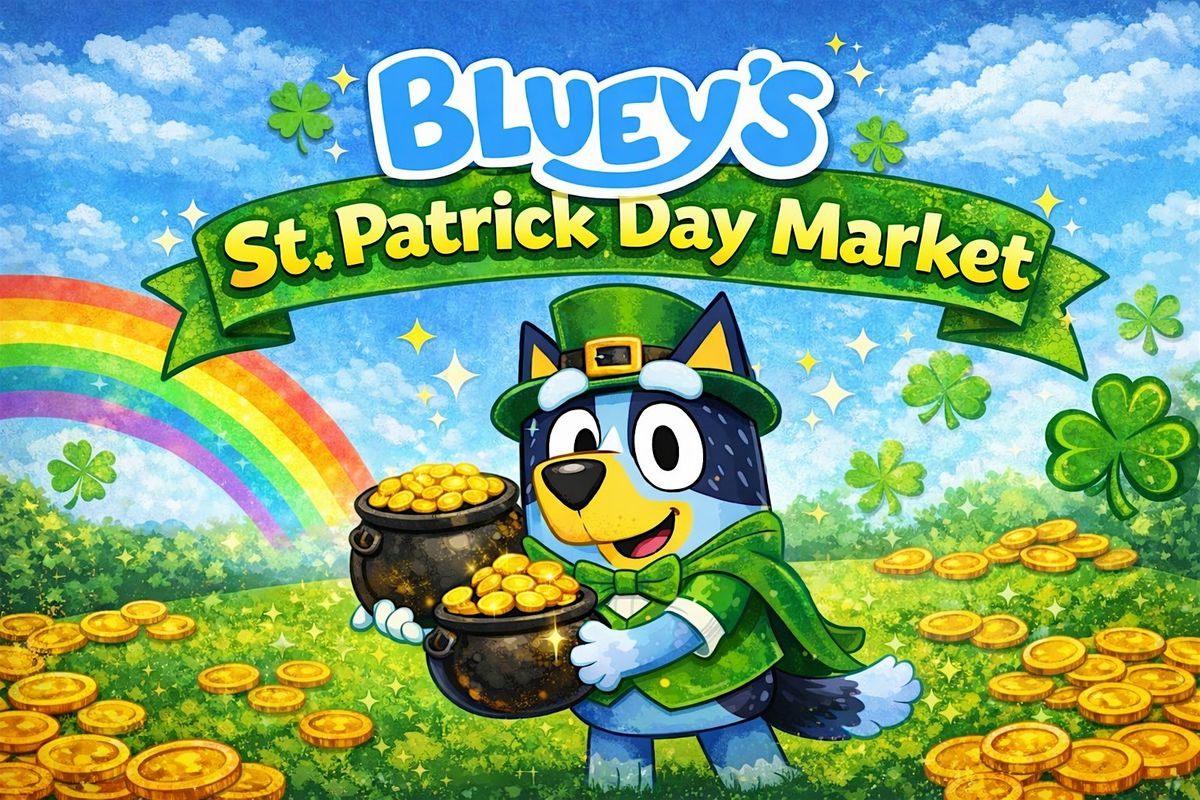 Join us for Bluey’s St. Patrick’s Day Family Market, a FREE fun-filled community celebration packed with family vibes, lucky charms, and tons of activities for kids and adults!